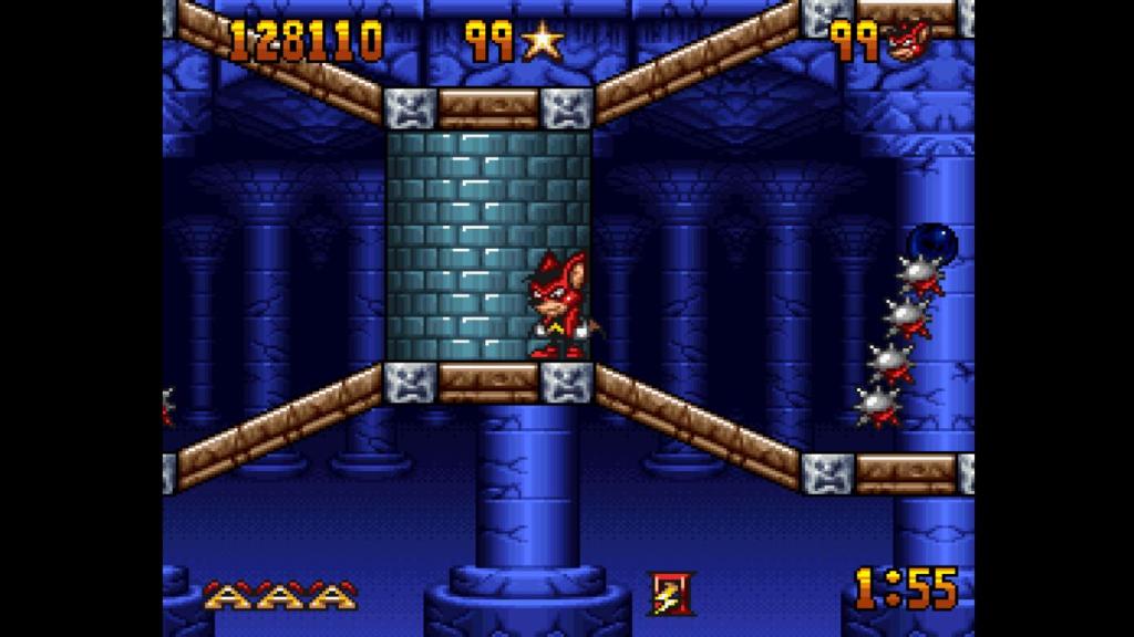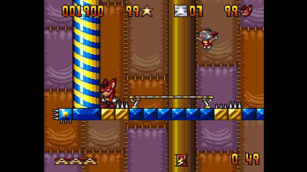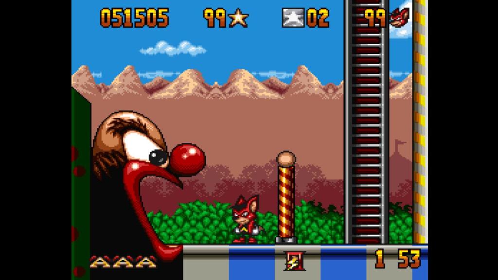 Insgesamt handelt es sich bei Neuauflage von „Aero the Acro-Bat“ um eine schicke Portierung des Spiels vom Mega Drive oder SNES, zumal die Originalmodule mittlerweile schon nicht mehr so günstig zu bekommen sind. Die Neuauflage ist durch Cheats, Save States und Rückspulfunktion um einiges eingänglicher. Allerdings krankt das Leveldesign manchmal, gerade wenn man eine bestimmte Anzahl von Ringen oder ähnlichem aktivieren muss, um das Level zu beenden. Denn es ist mehr als einmal beim Durchspielen passiert, dass ich zwar am Ende angekommen bin, aber nicht alles erledigt hatte und dann mühsam nach dem fehlenden Element suchen musste, bevor der Timer ablief. Hier wäre noch der ein oder andere Wegweiser nicht ganz schlecht gewesen, sowas gibt es aber weder im Original, noch in der Neuauflage. Dennoch stellt das Spiel eine interessante Reise in die Vergangenheit der Videospiele, die sowohl nostalgische Gefühle weckt als auch neue Herausforderungen bietet, dar. Retrospieler kommen daher auf jeden Fall auf ihre Kosten und können sich auch schon auf die Fortsetzungen freuen, die ebenfalls noch dieses Jahr erscheinen sollen!
