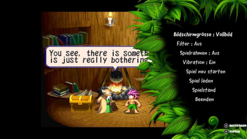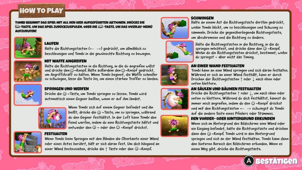 Die Neuauflage von „Tomba!“ ist kein klassisches Remake, sondern ein Remaster und bringt als solches eher dezente Verbesserungen mit sich. Die Grafik wurde überarbeitet und bietet nun schärfere Texturen und flüssigere Animationen, was das Spielerlebnis deutlich verbessert, ohne den Charme des Originals zu verfälschen. Auch die Steuerung wurde optimiert, um den modernen Standards gerecht zu werden. Eine der größten Neuerungen ist die Möglichkeit, das Spiel jederzeit zu speichern und eine Rückspulfunktion, die es den Spielern ermöglicht, Fehler schnell zu korrigieren. Diese Funktionen machen das Spiel zugänglicher und weniger frustrierend, besonders für neue Spieler.