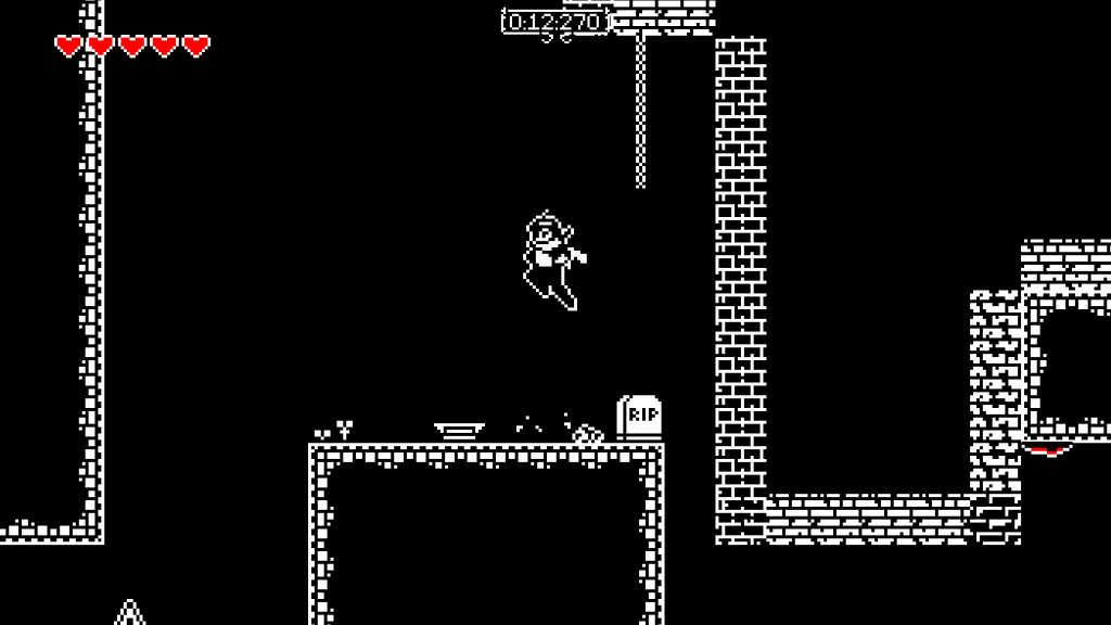 Das Spiel bietet eine gelungene Mischung aus Nostalgie und moderner Spielmechanik. Die pixelige Grafik und der monochrome Stil mit gelegentlichen roten Akzenten verleihen dem Spiel einen einzigartigen Look. Die Musik, obwohl repetitiv, trägt zur Retro-Atmosphäre bei und erinnert an die Klassiker der Videospielgeschichte. Die kurzen, aber herausfordernden Level sind perfekt für Spieler, die eine schnelle, aber intensive Spielerfahrung suchen. Zudem bietet das Spiel eine Vielzahl von Fähigkeiten und Power-Ups, die das Gameplay abwechslungsreich und spannend halten. Versteckte Geheimnisse laden zusätzlich zum intensiven und wiederholten Erkunden der Levels ein.