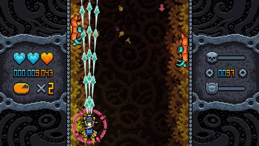 Ein weiteres Highlight des Gameplays ist die Möglichkeit, verschiedene Power-Ups und Upgrades freizuschalten, die deine Fähigkeiten und Waffen verbessern. Entgegen anderer Spiele, bei denen man die Power-Ups im Rahmen der Levels freigeschaltet, verdient man hier in den Levels Zahnräder, die man im Hauptmenü gegen Upgrades und Fähigkeiten einsetzen kann. Auf diese Weise ist selbst ein kurzer Run nie vergebens, da es kontinuierlichen Fähigkeitenzuwachs gibt.