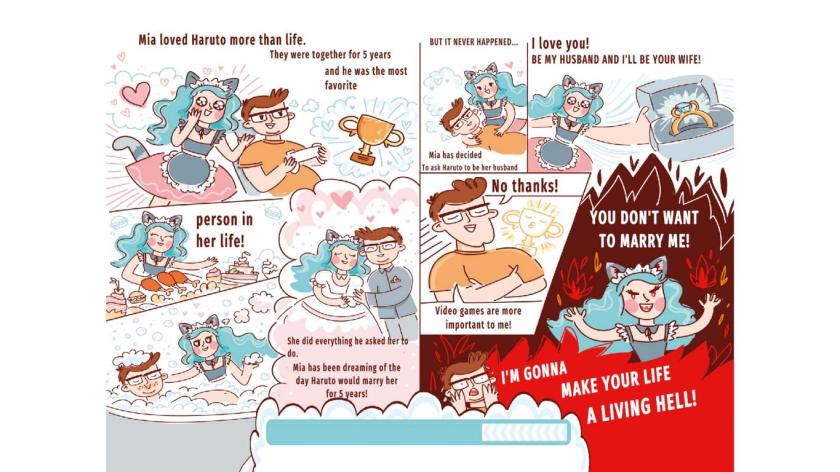 Doch zu ihrer Bestürzung lehnt Haruto ab und gibt an, dass Videospiele für ihn wichtiger seien als die Ehe und er ohnehin kein Mann für nur eine Frau wäre… – Verletzt und wütend beschließt Miya, sich zu rächen, indem sie Harutos Leben in ein wahres Chaos stürzt. – Diese Prämisse erinnert nostalgisch an Filme wie „Der Rosenkrieg“, in denen persönliche Konflikte auf humorvolle Weise eskalieren, mit dem Unterschied, dass es nun an uns als Spieler ist zu zeigen wie weit Rache bei verletztem Stolz gehen kann.