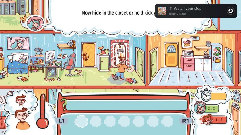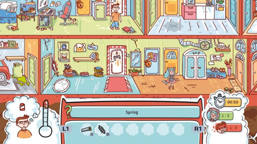 Das Gameplay von „Girlfriend from Hell“ basiert auf klassischen Point-and-Click-Mechaniken. Aus einer seitlichen Schnittansicht des Hauses navigieren die Spieler Miya durch verschiedene Räume, sammeln Gegenstände und platzieren Fallen, um Haruto das Leben schwer zu machen. Jedes Level stellt dabei ein eigenes Puzzle dar, bei dem es darum geht, die richtigen Objekte zu finden und sie zur richtigen Zeit einzusetzen, um Haruto zum Ausrasten zu bringen, ohne dabei erwischt zu werden. Dieses Spielprinzip erinnert stark an „Neighbours from Hell“, wobei der Schwerpunkt auf humorvollen Streichen liegt. Die Steuerung ist intuitiv gestaltet, kann jedoch gelegentlich unpräzise wirken, was zu Frustration führen kann, zumal das jedes Level mit einem ziemlich knackigen Timelimit ausgestattet ist. Generell steigt der Schwierigkeitsgrad aber moderat an und bleibt insgesamt zugänglich für Spieler aller Erfahrungsstufen.