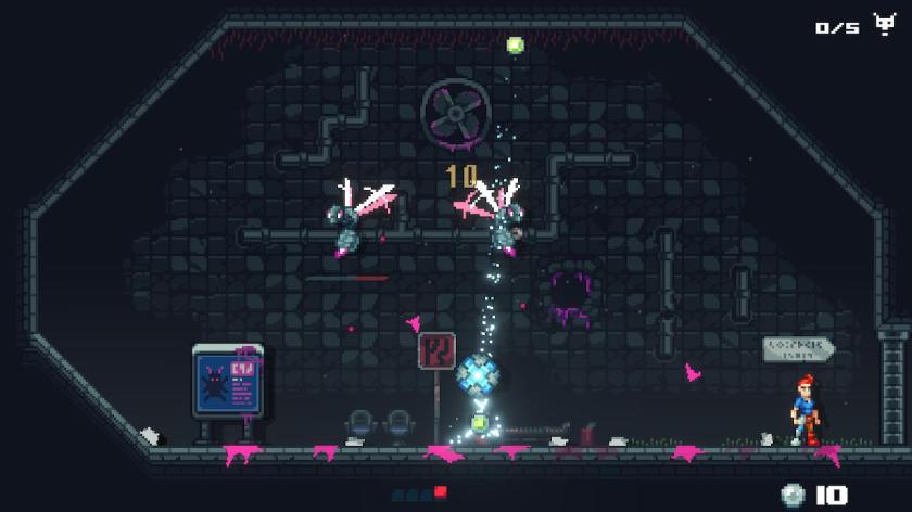 Grafisch überzeugt das Spiel mit einer charmanten Pixelart-Ästhetik. Die Umgebungen sind detailreich gestaltet und vermitteln eine stimmige Atmosphäre der postapokalyptischen Untergrundwelt. Hier und da erkennt man zwar, dass die zufallsgenerierten Levels aus ähnlichen Versatzstücken bestehen, aber diese sind in sich stimmig und mir sind bisher innerhalb eines Runs keine Dopplungen aufgefallen, wie es manchmal bei anderen Roque Likes der Fall ist. Der dynamische Soundtrack unterstreicht das actiongeladene Gameplay und passt sich den jeweiligen Spielsituationen an. Technisch läuft das Spiel sowohl auf dem PC als auch auf der Nintendo Switch flüssig, wobei die Switch-Version auch keine Unterschiede zwischen Docked und Handheld festzustellen waren.