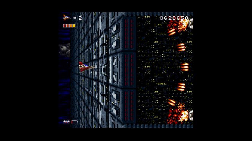 Das Gameplay ist eine gelungene Fusion aus zwei Spielstilen. Die Run-and-Gun-Abschnitte erinnern an die Turrican-Reihe, bieten jedoch ein schnelleres Tempo und eine direktere Steuerung. Die Steuerung ist präzise, und die Level sind abwechslungsreich gestaltet, mit vertikalen und horizontalen Passagen, die den Spieler ständig fordern. Die Shoot-‚em-up-Sequenzen sind besonders hervorzuheben: Sie sind rasant, fordernd und bieten eine Vielzahl von Gegnerformationen und Bosskämpfen, die an Klassiker wie „Axelay“ oder „R-Type“ erinnern. Der Schwierigkeitsgrad ist hoch, aber fair, und die neuen Funktionen wie Rückspulfunktion und Speicherstände machen das Spiel auch für Einsteiger zugänglich.