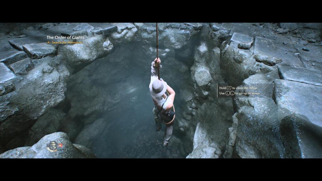 Das Gameplay bleibt das Herzstück. Wer das Hauptspiel kennt, weiß bereits, dass es nicht nur klassisches Action-Adventure ist, sondern auch durch den ungewöhnlichen Wechsel der Perspektiven auffällt. Der Großteil des Spiels läuft in der Egoperspektive: hier fühlt sich jede Bewegung, jede Peitschenaktion und jeder Faustkampf direkt und unmittelbar an. Der Spieler sieht durch Indys Augen, spürt die Enge der Katakomben, das Gewicht der uralten Steinwände und das Flackern der Fackeln im Untergrund. Für die Immersion ist diese Wahl großartig – man fühlt sich mittendrin im Abenteuer. Doch genau dann, wenn es filmisch werden soll – etwa in Zwischensequenzen, Kletterpassagen oder bei spektakulären Kampfmomenten –, wechselt das Spiel elegant und nahtlos in die Third-Person-Ansicht. Der Spieler sieht Indy nun vollständig, erkennt seine ikonische Silhouette mit Hut und Peitsche und hat ein cineastisches Bild, das sofort Erinnerungen an die Filme weckt. Dieser Wechsel wirkt nie störend, sondern bewusst eingesetzt, um Dramaturgie zu erzeugen. Gerade Neulinge, die das Hauptspiel nicht gespielt haben, sollten sich davon überraschen lassen: Es ist ein eigenwilliger Mix, der die Spielwelt intensiver und abwechslungsreicher erscheinen lässt.