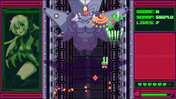 Die Charaktere sind zu Beginn drei Pilotinnen, jeweils mit unterschiedlicher Schussart und Metallschwert oder Nahkampffähigkeit („melee“), später kommen noch weitere Charaktere hinzu, die wir freischalten können. Die Welt ist futuristisch und technisiert, stark getränkt von Robotik, Mechs und den Ängsten vor entfesselter künstlicher Intelligenz – ähnlich wie in klassischen Shoot-’em-ups mit Sci-Fi Setting oder auch an Anime-Serien, in denen Maschinen gegen Menschen rebellieren. Humorig-leicht wird der Plot durch Dialoge und Fun Comms aufgelockert, ohne zu tief in philosophische Fragen einzutauchen.