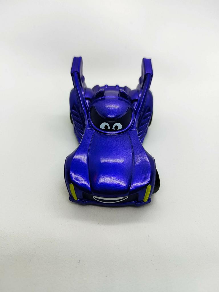 Der Batwheels Tonie kommt natürlich in Form von Bam, dem kleinen Batmobil höchstpersönlich. Die Figur ist glänzend Violett, mit leuchtenden Akzenten und diesen typischen, großen Cartoon-Augen, die sofort klarmachen: Hier geht’s nicht um düstere Vigilanten-Action, sondern um Spaß mit Superheldenflair.
