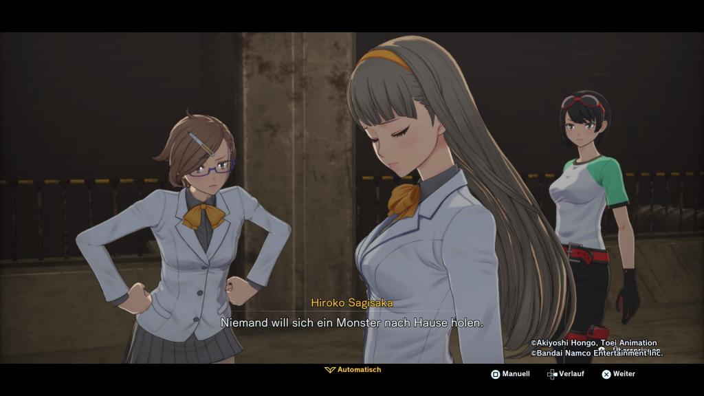 Zu Beginn wählt man einen von zwei spielbaren Charakteren, den jeweils anderen übernimmt dann als Operator und Gesprächspartner im Verlauf der Geschichte. Der eigene Protagonist bleibt meist still, was manchem Spiel die Immersion rauben würde, doch Time Stranger umgeht das geschickt: Durch die starke Präsenz des Partners, die klugen Dialoge und die emotional gezeichneten Charaktere fühlt man sich nie außen vor. Das Spiel versteht es, Gemeinschaft zu inszenieren, und schafft es, selbst Nebenfiguren mit Leben zu füllen. Besonders beeindruckend ist, wie die Digimon selbst charakterisiert sind, nicht als Werkzeuge im Kampf, sondern als fühlende, denkende Wesen. Immer wieder suchen sie aktiv das Gespräch, fragen nach Rat oder teilen ihre Sorgen. Diese Interaktionen prägen ihre Persönlichkeitsentwicklung und eröffnen neue Fähigkeiten, ein kleines, aber brillantes System, das emotionale Bindung und spielmechanischen Fortschritt elegant verbindet.