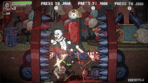 Inhaltlich orientiert sich das Spiel lose an den Filmen, ohne diese eins zu eins nachzuerzählen. Im Mittelpunkt steht natürlich der ikonische Killerclown Art the Clown, der erneut eine Spur aus Chaos, Gewalt und groteskem Humor hinterlässt. Die Handlung ist bewusst simpel gehalten, ganz so, wie man es von alten Arcade-Titeln kennt: Art zieht mordend durch verschiedene Schauplätze, die stark an die Filmkulissen erinnern – von schäbigen Straßen über düstere Gebäude bis hin zu alptraumhaften Locations, die irgendwo zwischen Realität und Wahnsinn angesiedelt sind. Konkrete Motivation braucht der Antagonist nicht, denn sein Antrieb ist reiner Sadismus.