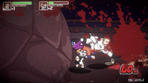 Das Gameplay ist eine Liebeserklärung an das klassische Arcade-Beat-’em-up. Gesteuert wird aus einer seitlichen Perspektive, Gegner strömen in Wellen auf den Bildschirm, und es gilt, mit Schlägen, Tritten und teils absurd brutalen Spezialattacken für Ordnung zu sorgen – oder vielmehr für noch größeres Chaos. Die Steuerung ist bewusst einfach gehalten: Ein Angriffsknopf, ein Sprung, Griffe und Spezialaktionen reichen aus, um sich effektiv durch die Levels zu kämpfen. Wer Genre-Erfahrung mitbringt, findet sich sofort zurecht. Gleichzeitig sorgt die Vielfalt an Waffen, von improvisierten Alltagsgegenständen bis hin zu ikonischen Mordwerkzeugen, für Abwechslung.
