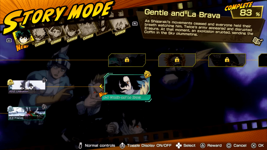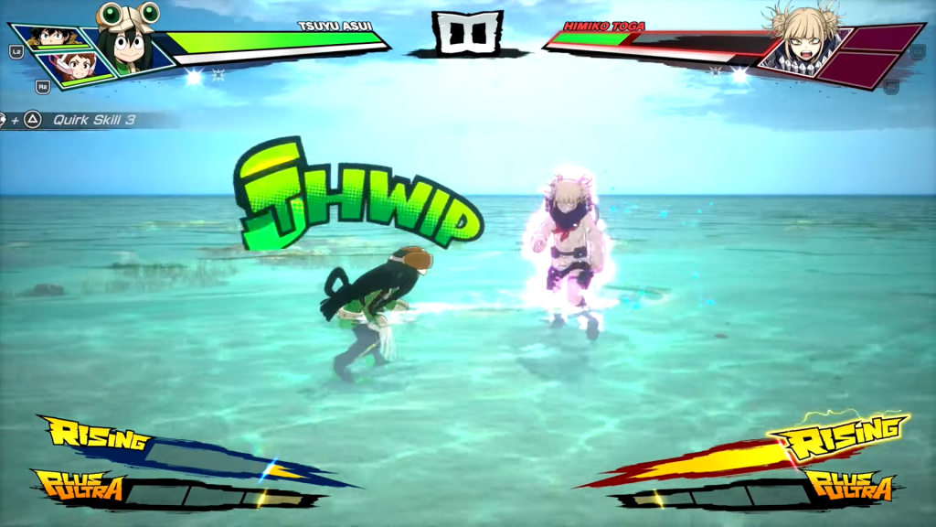 Auch der Kader insgesamt ist angenehm groß, ohne erschlagend zu wirken. Finale Versionen der Charaktere dominieren nicht automatisch, da der entscheidende Wendepunkt häufig erst dann eintritt, wenn eine Figur als letzter Kämpfer übrig bleibt und in den sogenannten Rising-Zustand übergeht. Dieser verleiht spürbare Boni auf Schaden und Fähigkeiten und sorgt für dramatische Comebacks. Helden und Schurken sind spielerisch gleichermaßen interessant, wobei insbesondere Dabi mit seinem Spielstil hervorsticht. Der Storymodus überrascht zudem mit fordernden Situationen, etwa wenn man es mit mehreren Gegnern gleichzeitig aufnehmen muss.