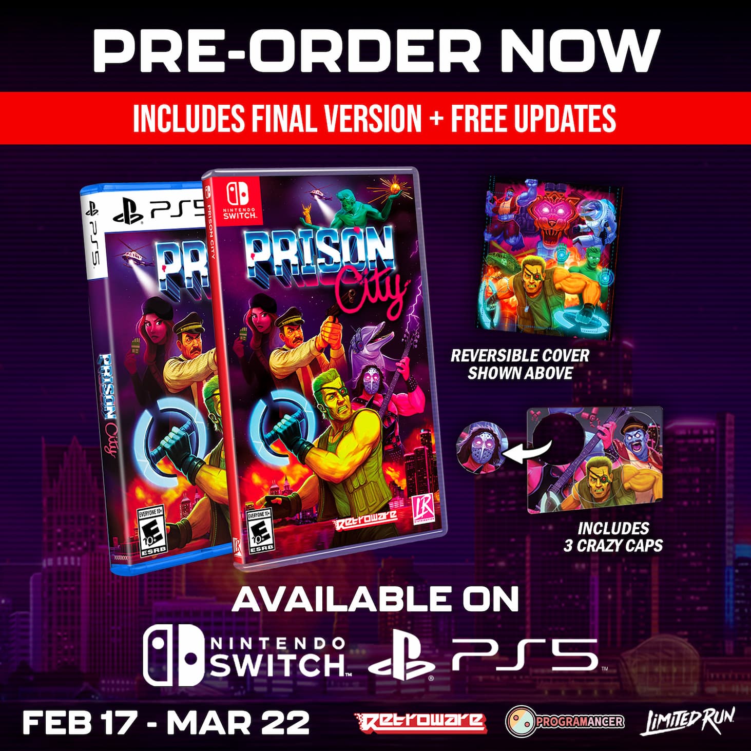 Der Retro‑Actiontitel „Prison City“ verlässt seine digitale Zelle und erscheint erstmals auch als physische Edition. Wie Publisher Retroware („Neon Inferno„) mitteilt, öffnen die Vorbestellungen für Nintendo Switch und PlayStation 5 am 17. Februar und laufen bis zum 22. März über Limited Run Games. Jede Ausgabe enthält ein wendbares Cover, Crazy Caps sowie das finale große Update direkt auf Modul bzw. Disc.
