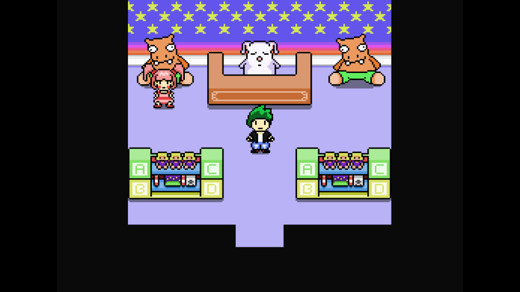 Spielerisch präsentiert sich das Spiel als klassisches Top-Down-Rollenspiel mit rundenbasierten Kämpfen und hat mich direkt an Klassiker wie „EarthBound“ erinnert. Die Steuerung ist bewusst einfach gehalten und orientiert sich an den Konventionen der Genreklassiker: Bewegung über die Karte, Interaktion mit Objekten und Figuren sowie der Wechsel in Kampfbildschirme, sobald Gegnerkontakt entsteht. Doch innerhalb dieser vertrauten Struktur versteckt sich ein ungewöhnlich tiefes System, das vor allem durch die Fähigkeit des Protagonisten geprägt ist, verschiedene Formen anzunehmen. Jimmy kann sich im Verlauf des Spiels in unterschiedliche Gestalten verwandeln, die jeweils eigene Fähigkeiten, Angriffe und strategische Möglichkeiten bieten. Diese Transformationsmechanik ist das Herzstück des Gameplays und sorgt dafür, dass Kämpfe selten eintönig wirken. Jede Form hat spezifische Stärken und Schwächen, sodass es oft notwendig ist, die eigene Strategie flexibel anzupassen. Manche Gegner reagieren empfindlich auf bestimmte Angriffe, während andere nur durch geschickte Kombinationen besiegt werden können. Das Spiel fordert dabei ein gewisses Maß an Aufmerksamkeit, ohne jemals unfair zu wirken. Der Schwierigkeitsgrad bewegt sich insgesamt im mittleren Bereich, wobei einige optionale Bosse und Geheimnisse deutlich anspruchsvoller ausfallen.