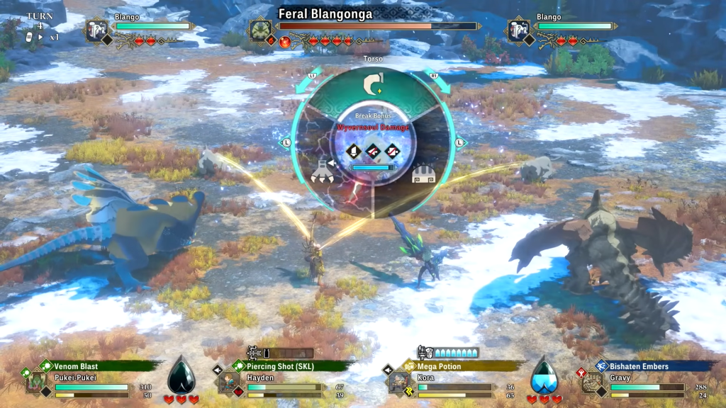 Mechanisch bleibt das bekannte Stein-Schere-Papier-Prinzip erhalten, bei dem Angriffe in die Kategorien Stärke, Technik und Geschwindigkeit unterteilt sind. Dieses System wurde jedoch erweitert. Gegner nutzen häufiger Spezialfähigkeiten, die nicht in dieses Schema passen, wodurch Kämpfe abwechslungsreicher und taktischer werden. Man muss ständig abwägen, ob man defensiv spielt oder versucht, mit gezielten Kontern maximalen Schaden zu verursachen. Gerade in Bosskämpfen entfaltet dieses System seine ganze Stärke. Visuell überzeugt das Spiel ebenfalls auf ganzer Linie. Die Animationen der Monster sind beeindruckend, die Spezialattacken spektakulär inszeniert und die Welt besitzt einen klaren, stilvollen Look. Lediglich die Benutzeroberfläche kann etwas überladen wirken und benötigt eine gewisse Eingewöhnungszeit, was allerdings typisch für die Reihe ist.
