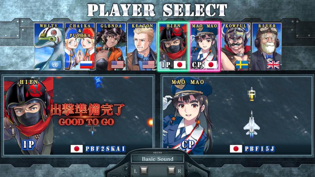 Die Handlung bleibt angenehm traditionsbewusst und funktioniert vor allem als Rahmen für das eigentliche Fluggefecht. Im Jahr 20XX geraten Städte rund um den Globus unter Angriff, weil die rätselhafte Organisation Fata Morgana mit überlegener Technologie und Superwaffen zurückkehrt. Dagegen stellt sich das internationale Rettungsteam Project Blue, dessen Pilotinnen und Piloten aus unterschiedlichen Motiven in den Einsatz ziehen. Das ist bewusst kein Storyspiel im modernen Sinn, sondern eher eine erzählerische Klammer, wie man sie aus der Arcade-Zeit kennt: knapp, klar, weltumspannend und mit genau jener Mischung aus Ernst und leicht exzentrischem Ton, die dem Genre früher oft einen ganz eigenen Charme gegeben hat. Dass sich Szenen und Dialoge je nach Charakterkombination verändern, gibt dem Ganzen dennoch mehr Farbe, als man bei einem so kompromisslos alten Schulmodell zunächst erwarten würde.